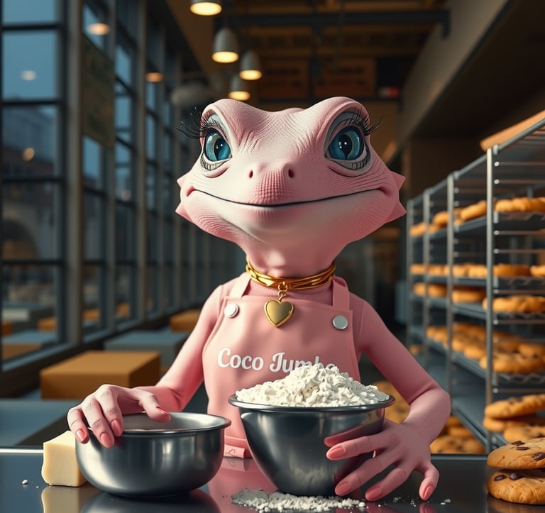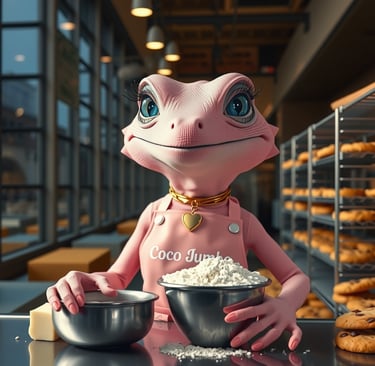 With her magical rolling pin and five adorable pink lizard bakers, Coco whips up ooey gooey chocolate chip cookies that are crispy on the outside and soft on the inside. In every battle she fights and every cookie she bakes, Coco honours her family’s legacy—a legacy built on resilience, love, and magic. This is her story—Coco Jumbo, baker by day… protector by night.